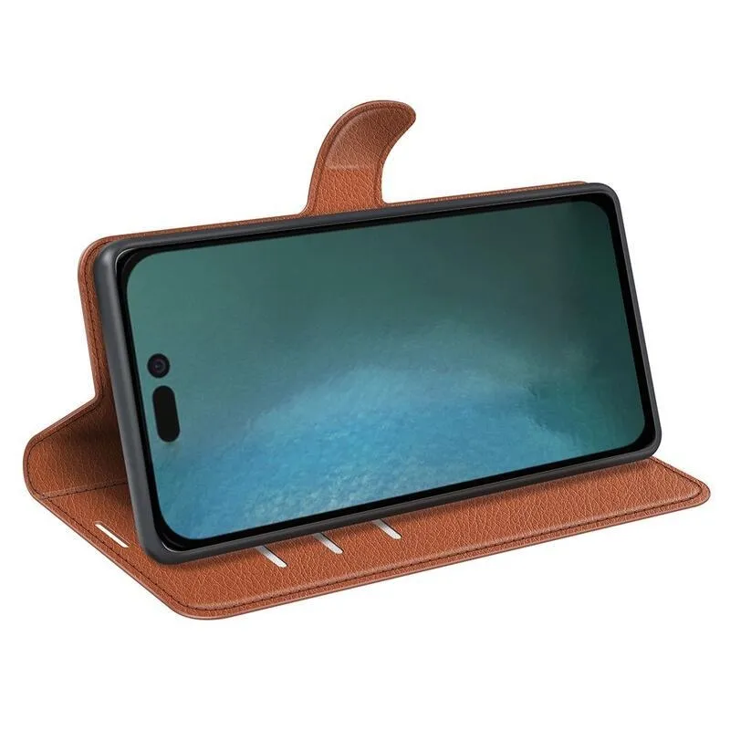 Litchi barna könyv tok iPhone 14 6.1 készülékhez