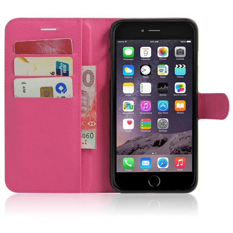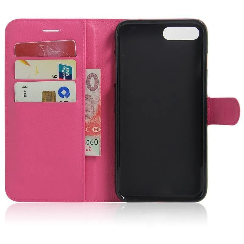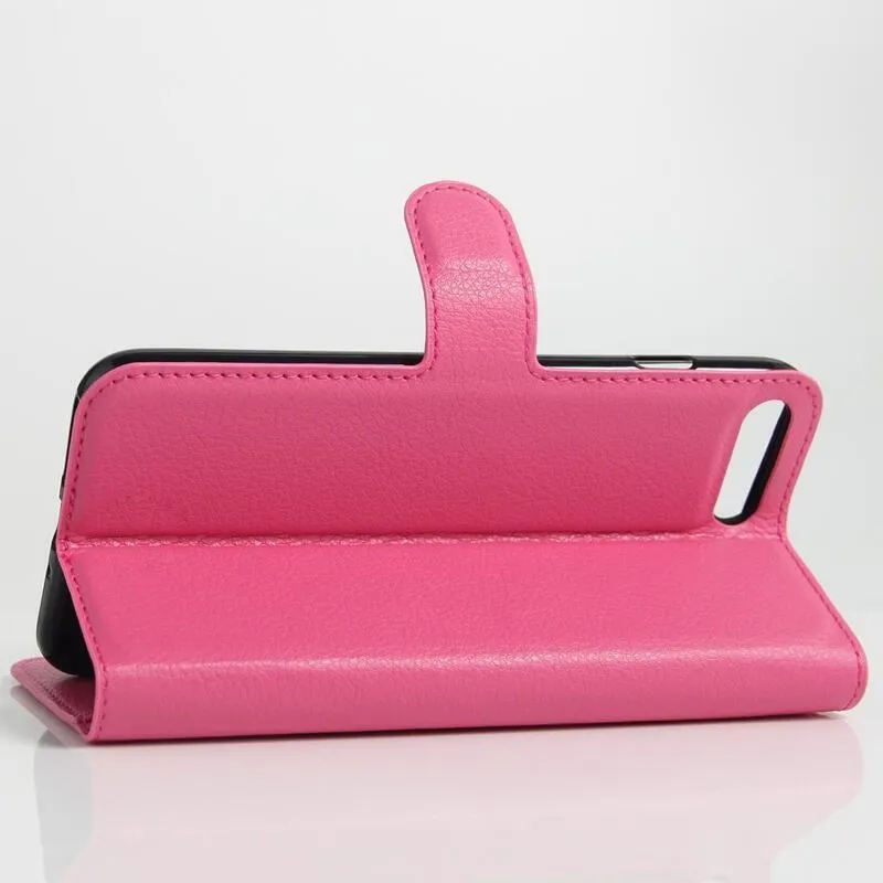 Litchi PU bőr pénztárca tok iPhone 8 Plus/7 Plus készülékhez - rózsaszínű
