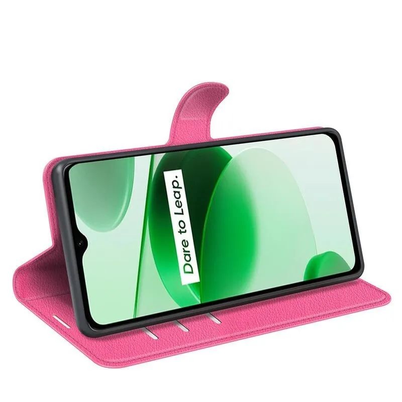 Litchi PU bőr pénztárca tok mobil Realme C35 - rózsa