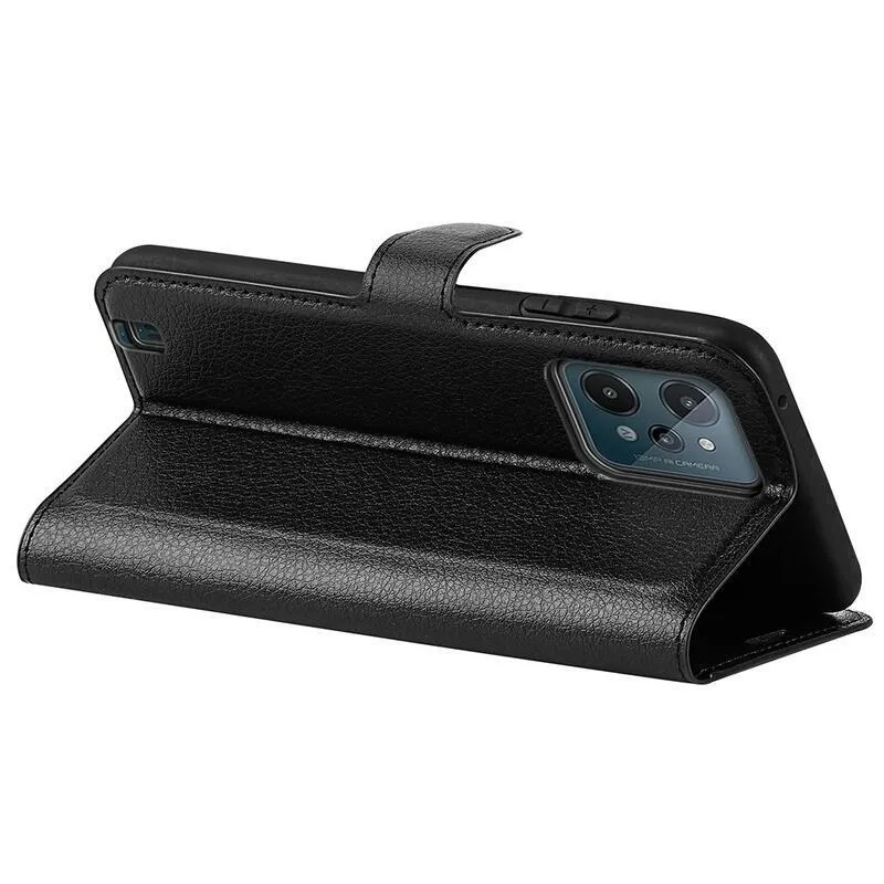 Litchi PU bőr pénztárca tok mobilhoz Realme C31 - fekete
