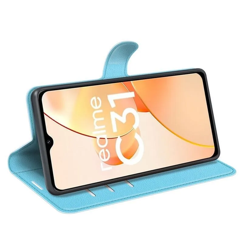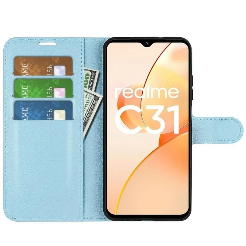 Litchi PU bőr pénztárca tok mobilhoz Realme C31 - kék