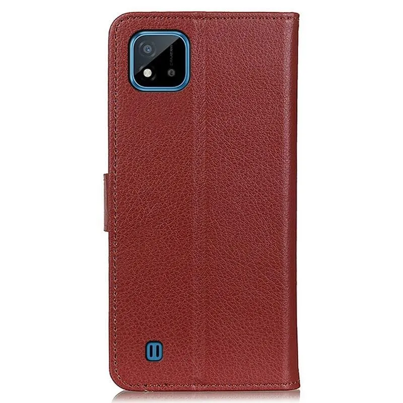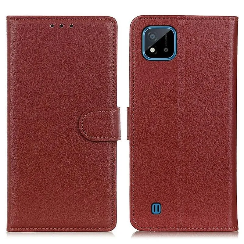 Litchi PU bőr pénztárca tok mobiltelefonhoz Realme C11 (2021) - barna