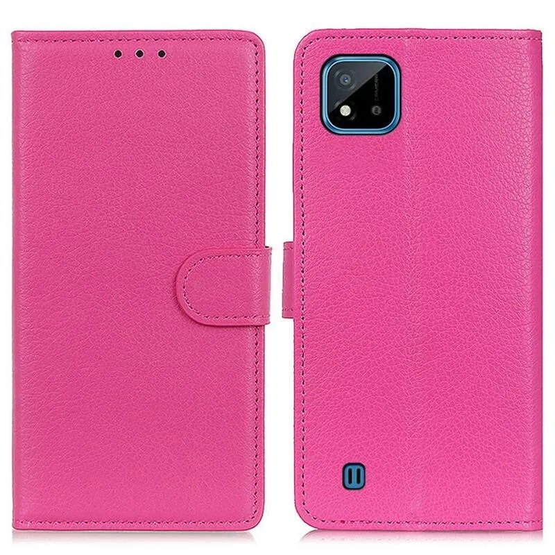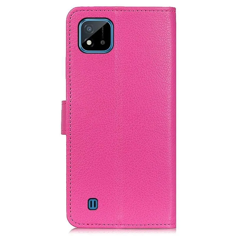 Litchi PU bőr pénztárca tok mobiltelefonhoz Realme C11 (2021) - rózsaszínű