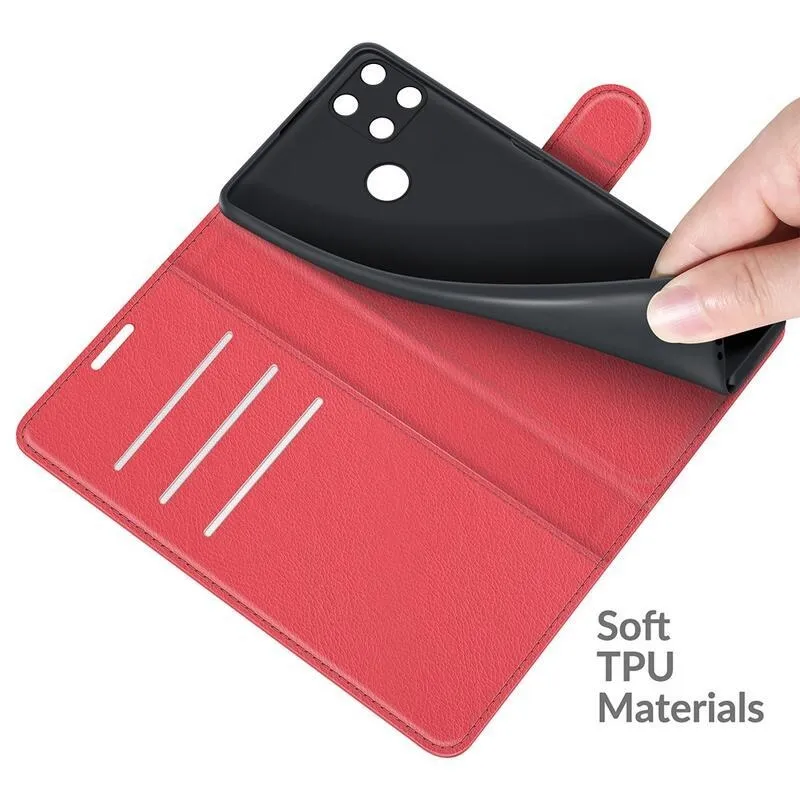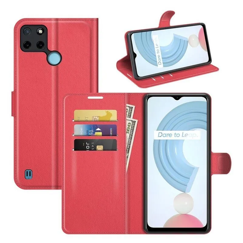 Litchi PU bőr pénztárca tok mobiltelefonhoz Realme C21Y/C25Y - piros
