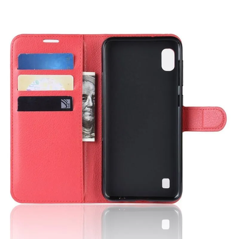 Litchi PU bőr pénztárca tok mobiltelefonhoz Samsung Galaxy A10 - piros