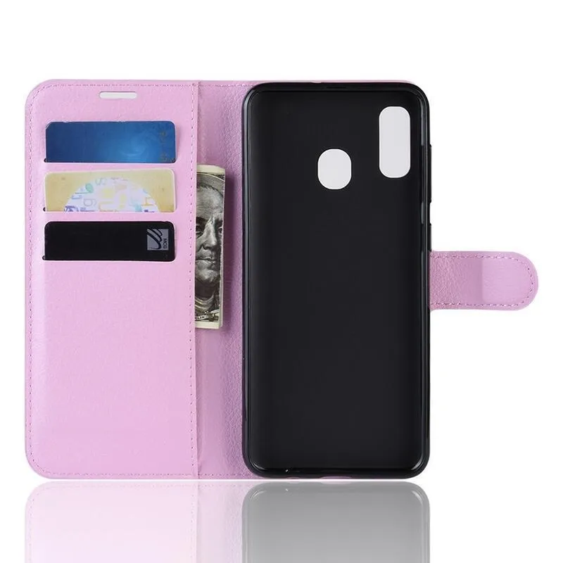 Litchi PU bőr pénztárca tok mobiltelefonhoz Samsung Galaxy A40 - rózsaszín