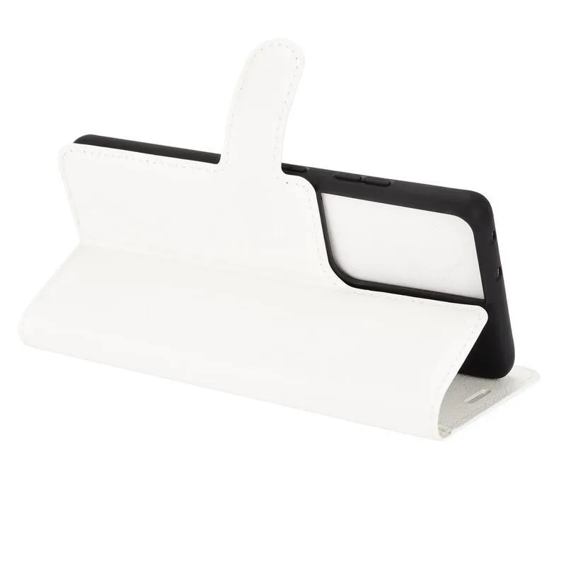 Litchi PU bőr pénztárca tok mobiltelefonhoz Samsung Galaxy S21 Ultra 5G - fehér