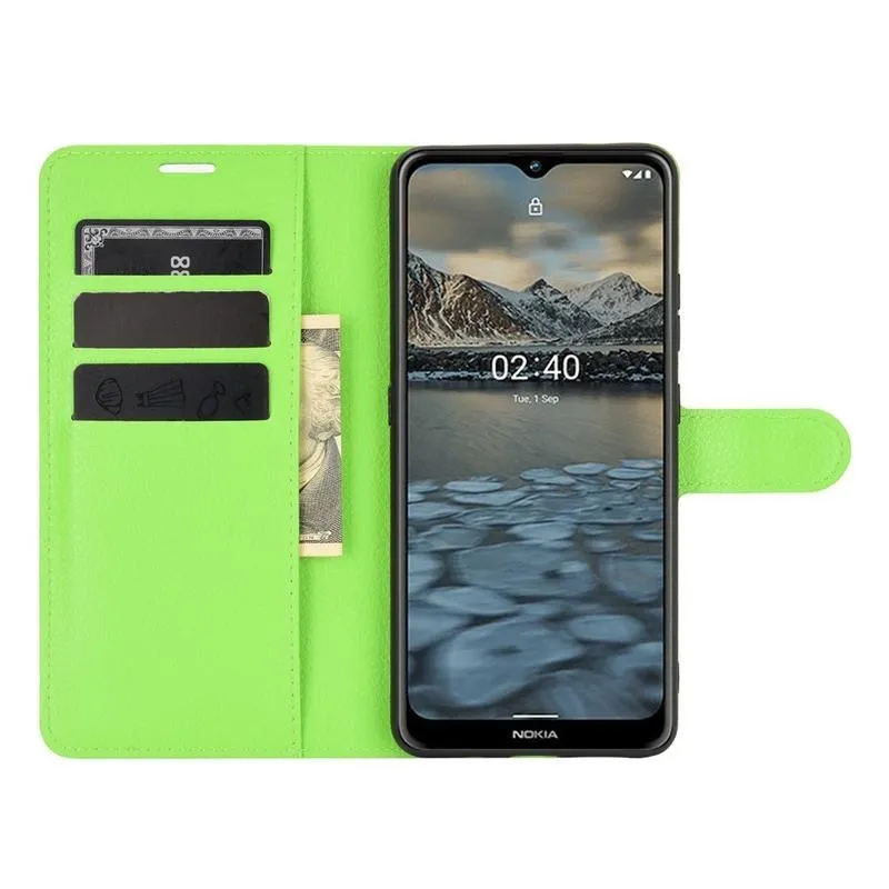 Litchi PU bőr pénztárca tok Nokia 2.4 mobiltelefonhoz - zöld