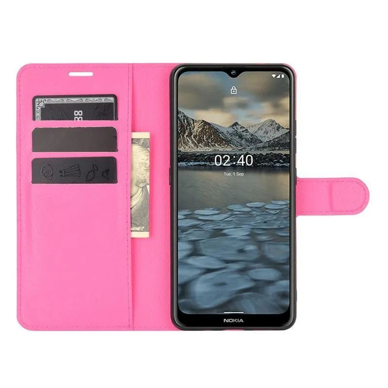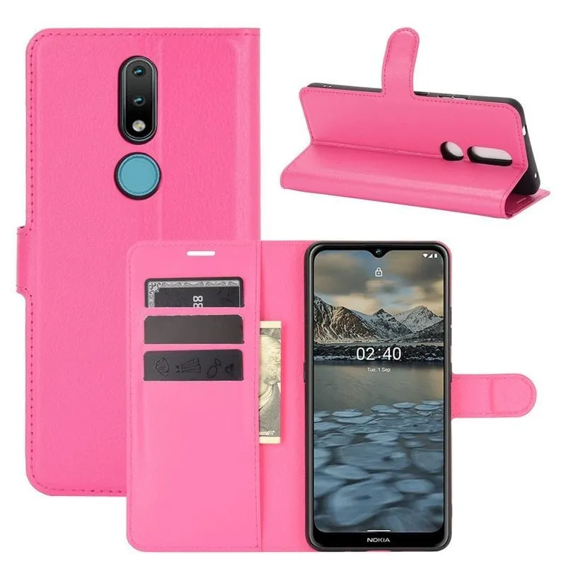 Litchi PU bőr pénztárca tok Nokia 2.4 - rózsaszínű
