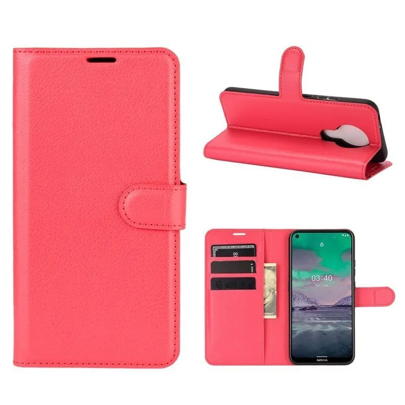 Litchi PU bőr pénztárca tok Nokia 3.4 készülékhez - piros