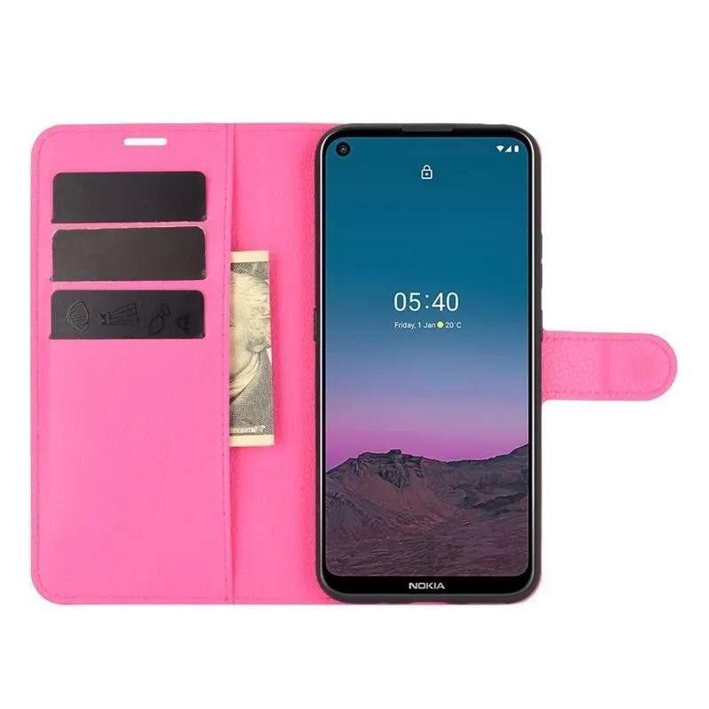 Litchi PU bőr pénztárca tok Nokia 5.4 mobiltelefonhoz - rózsaszínű