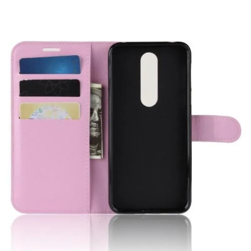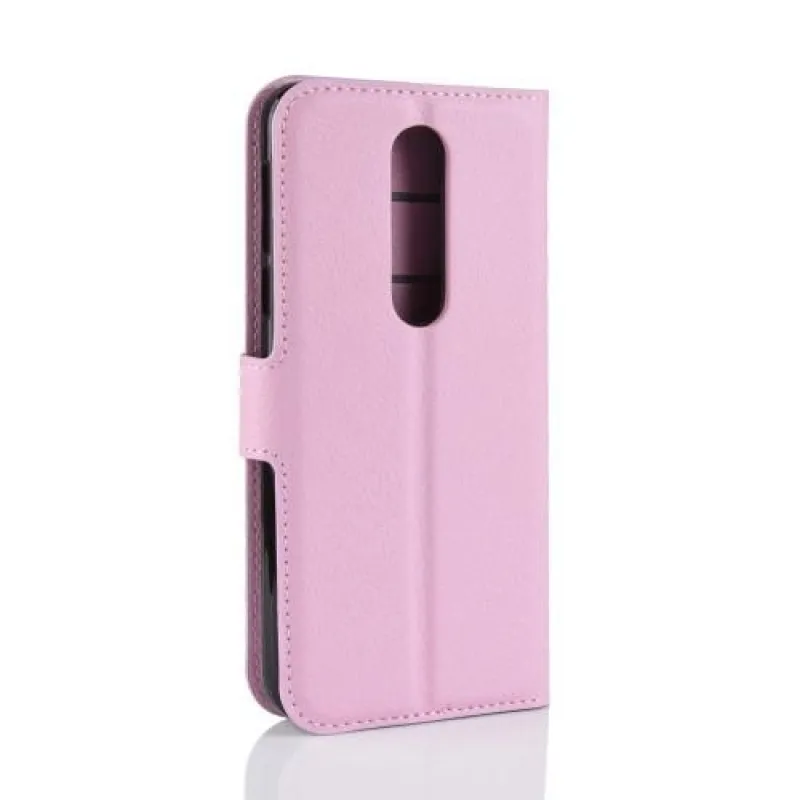 Litchi PU bőr pénztárca tok Nokia 7.1 készülékhez - rózsaszín