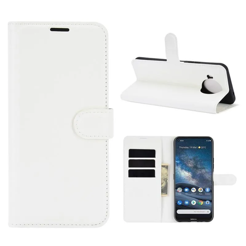 Litchi PU bőr pénztárca tok Nokia 8.3 5G mobiltelefonhoz - fehér