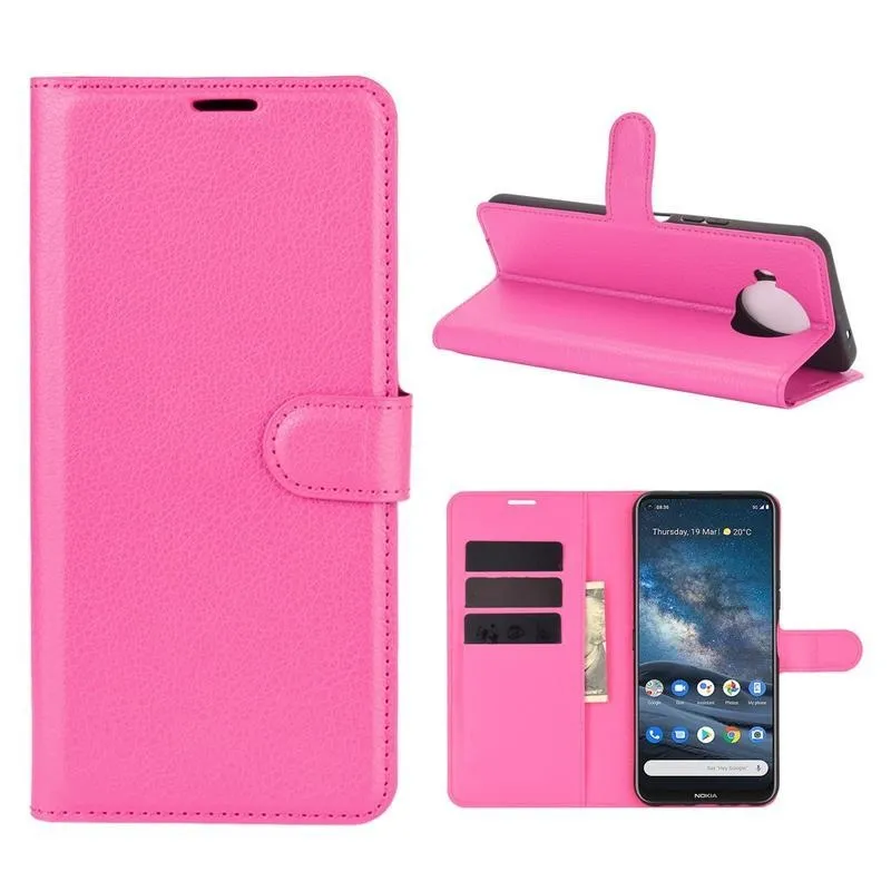Litchi PU bőr pénztárca tok Nokia 8.3 5G - rózsaszínű