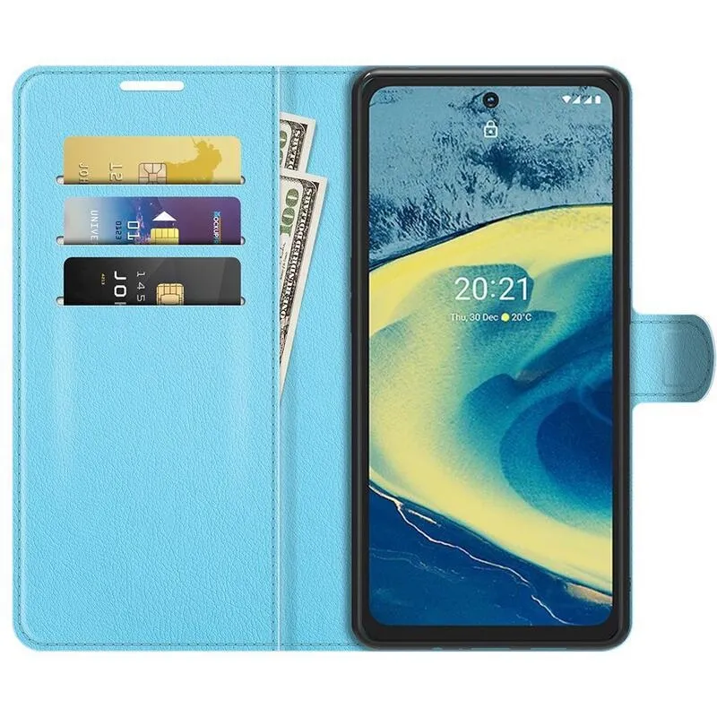 Litchi PU bőr pénztárca tok Nokia XR20 készülékhez - kék