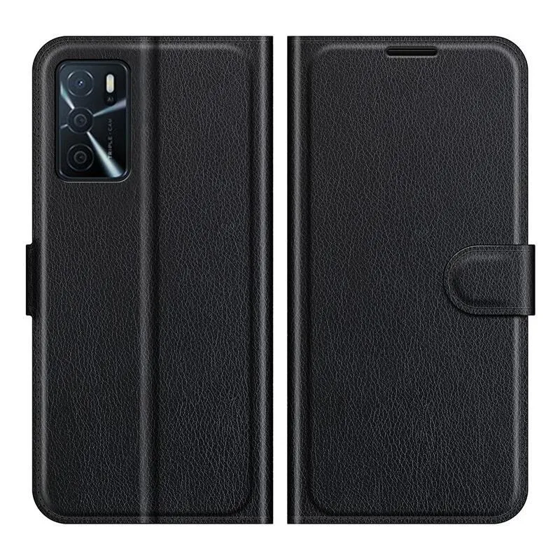 Litchi PU bőr pénztárca tok Oppo A16s/A54s - fekete