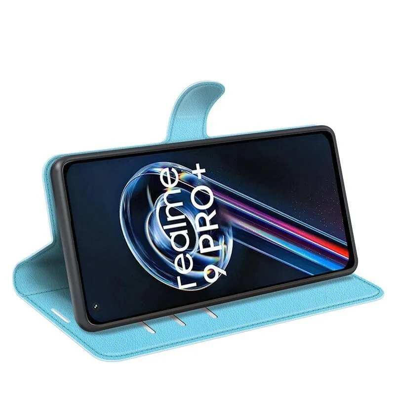 Litchi kék könyv tok a Realme 9 Pro+ 5G számára