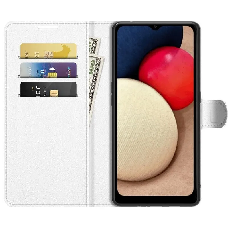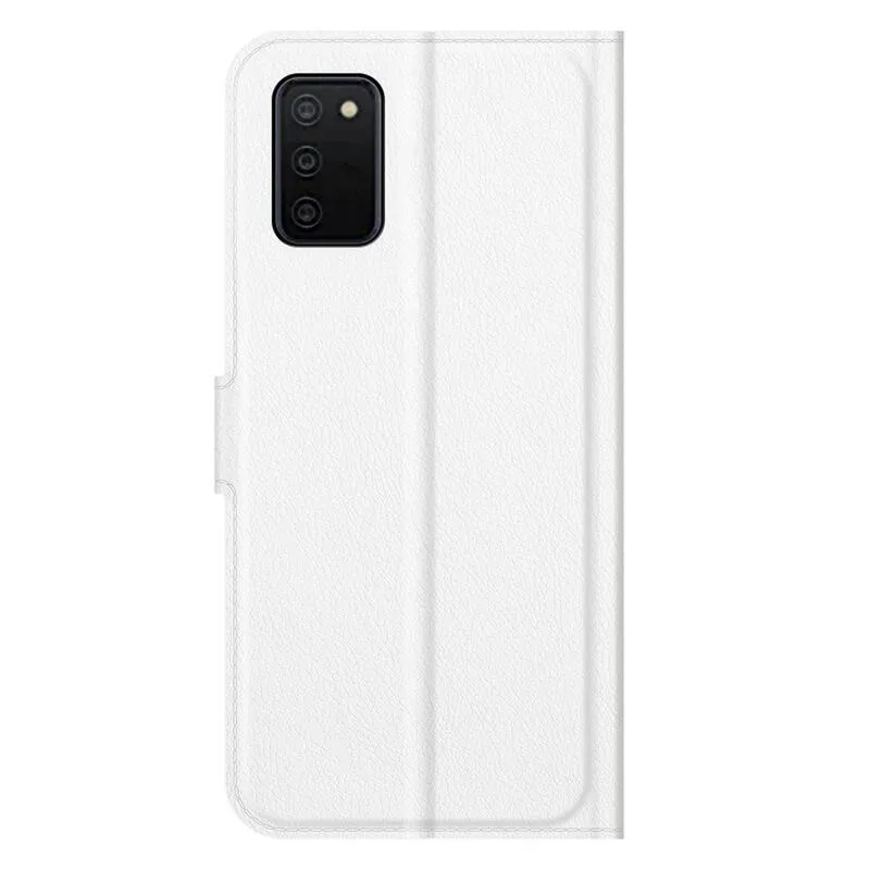 Litchi PU bőr pénztárca tok Samsung Galaxy A03s (166.6 x 75.9 x 9.1mm) - fehér