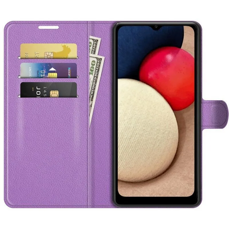 Litchi PU bőr pénztárca tok Samsung Galaxy A03s (166.6 x 75.9 x 9.1mm) - lila