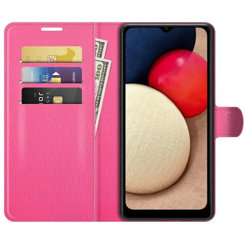 Litchi PU bőr pénztárca tok Samsung Galaxy A03s (166.6 x 75.9 x 9.1mm) - rózsaszínű