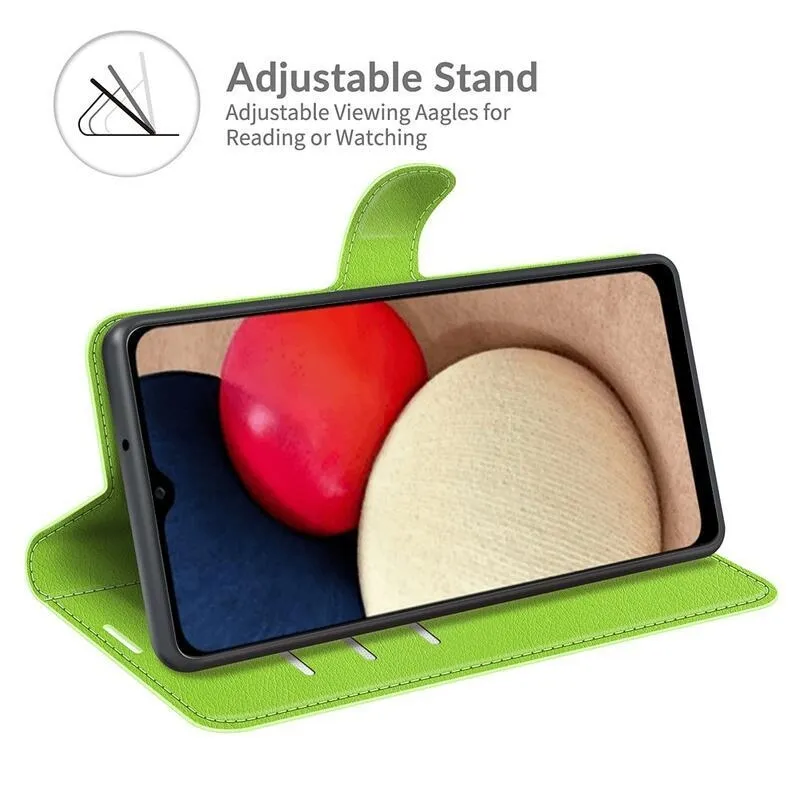 Litchi PU bőr pénztárca tok Samsung Galaxy A03s (166.6 x 75.9 x 9.1mm) - zöld