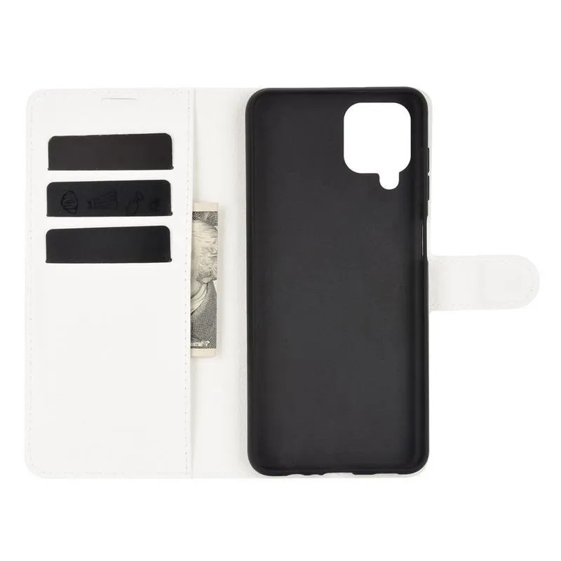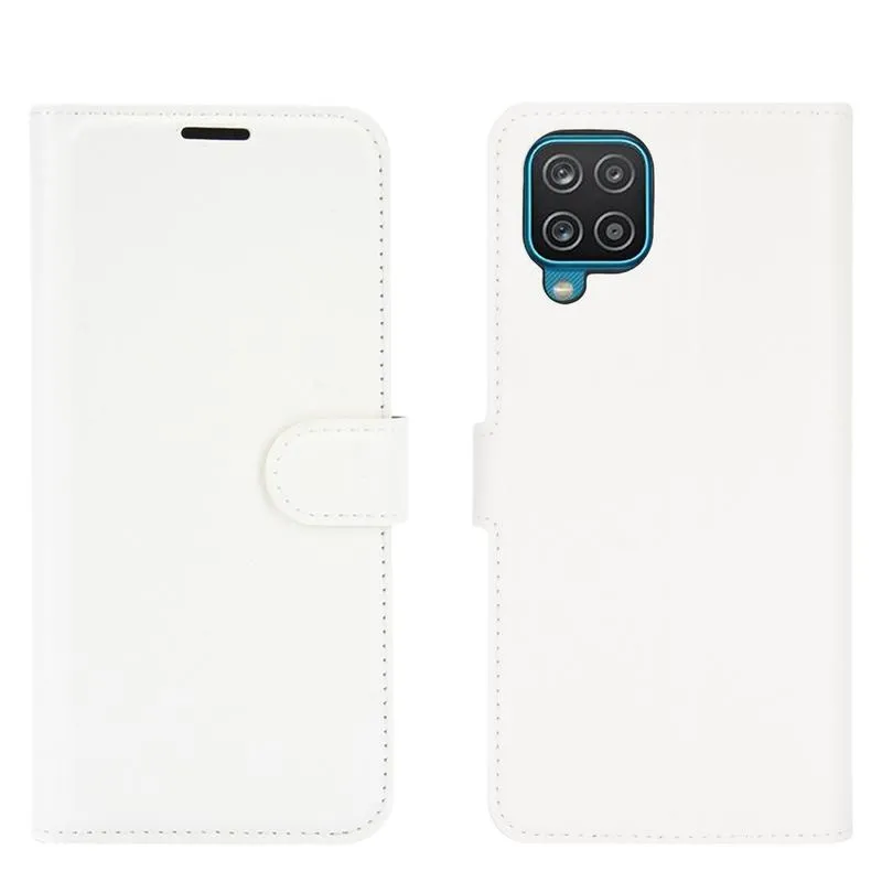 Litchi PU bőr pénztárca tok Samsung Galaxy A12/M12 készülékhez - fehér