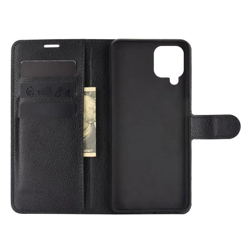 Litchi PU bőr pénztárca tok Samsung Galaxy A12/M12 készülékhez - fekete