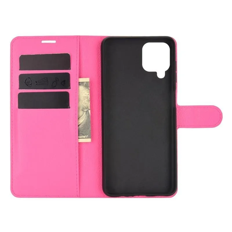 Litchi PU bőr pénztárca tok Samsung Galaxy A12/M12 - rózsaszínű