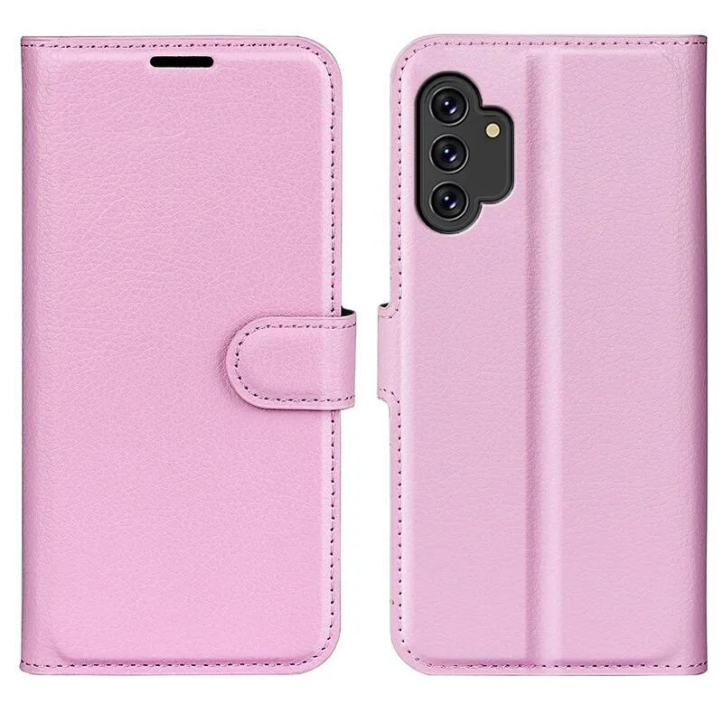 Litchi rózsaszín könyv tok Samsung Galaxy A13 4G-hez