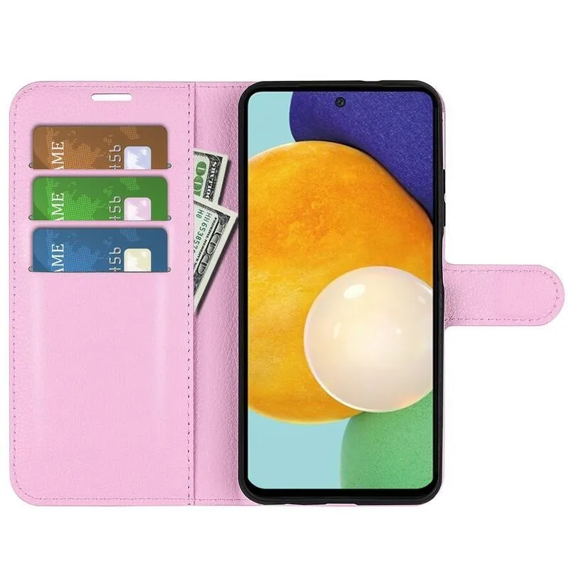 Litchi PU bőr pénztárca tok Samsung Galaxy A13 4G-hez - rózsaszín