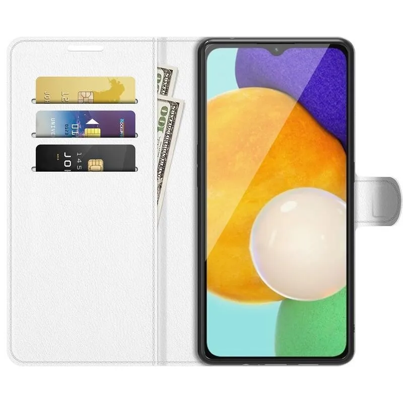 Litchi PU bőr pénztárca tok Samsung Galaxy A13 5G/Galaxy A04s (164.7 x 76.7 x 9.1 mm) - fehér