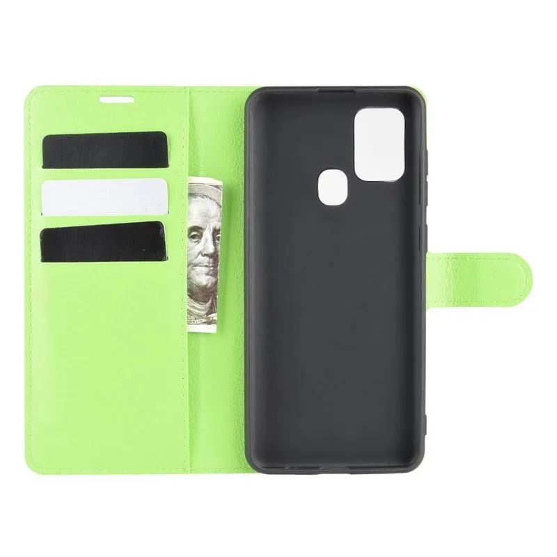 Litchi PU bőr pénztárca tok Samsung Galaxy A21s készülékhez - zöld