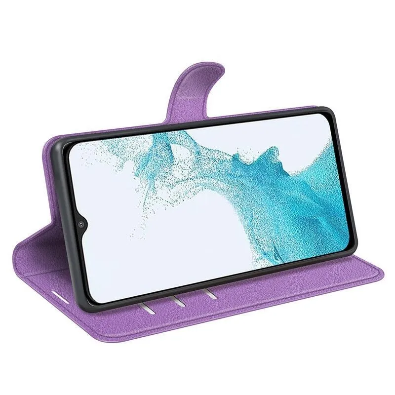 Litchi PU bőr pénztárca tok Samsung Galaxy A23 4G/5G - lila