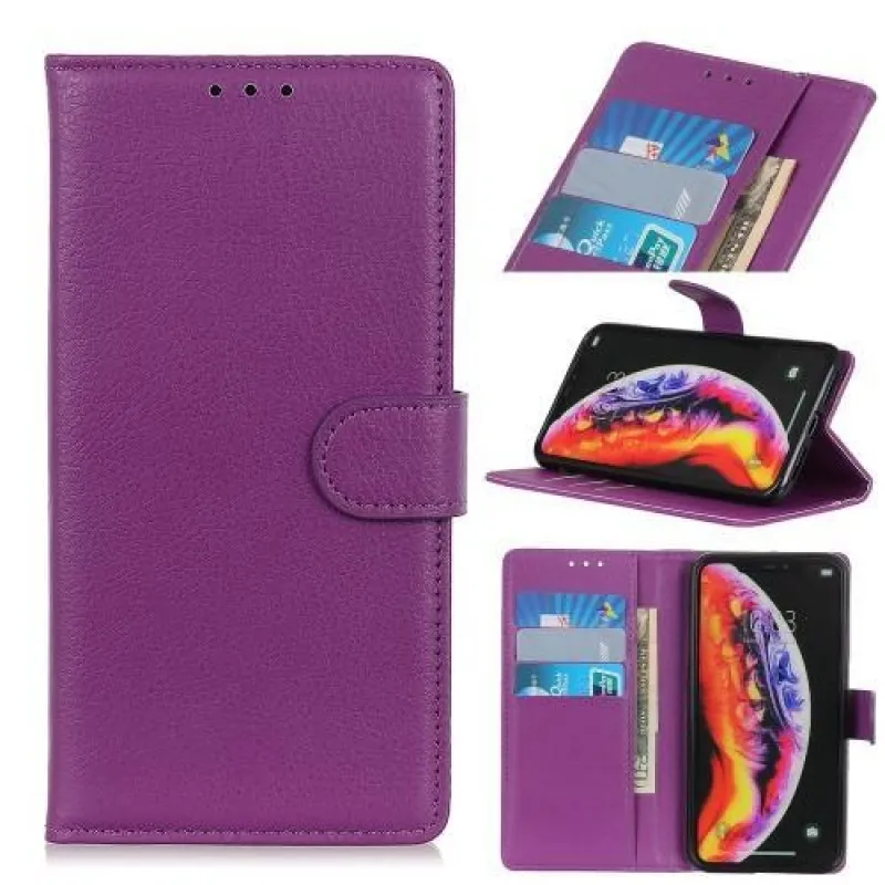 Litchi PU bőr pénztárca tok Samsung Galaxy A30 / A20-hoz - lila