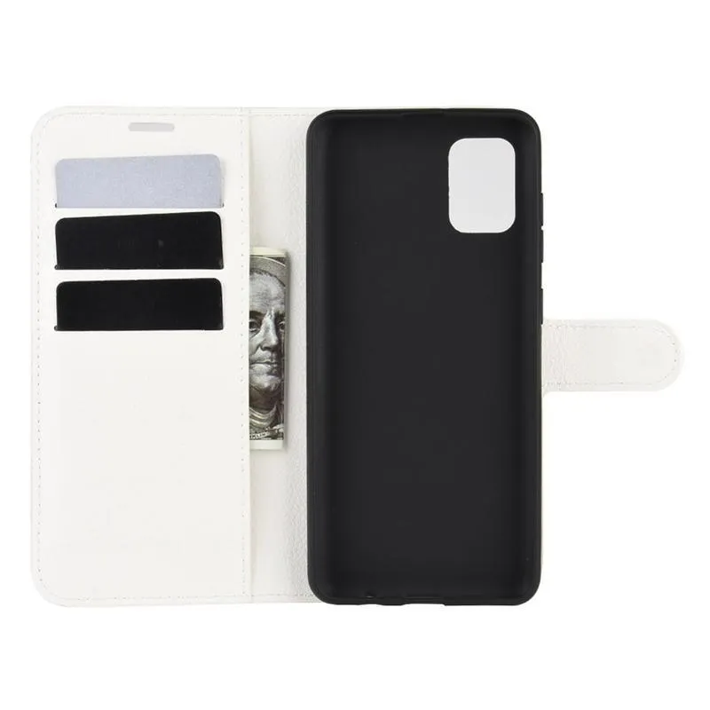 Litchi PU bőr pénztárca tok Samsung Galaxy A31-hez - fehér