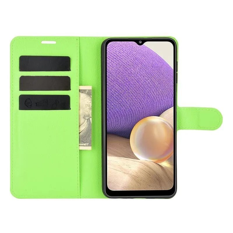 Litchi PU bőr pénztárca tok Samsung Galaxy A32 5G-hez - zöld
