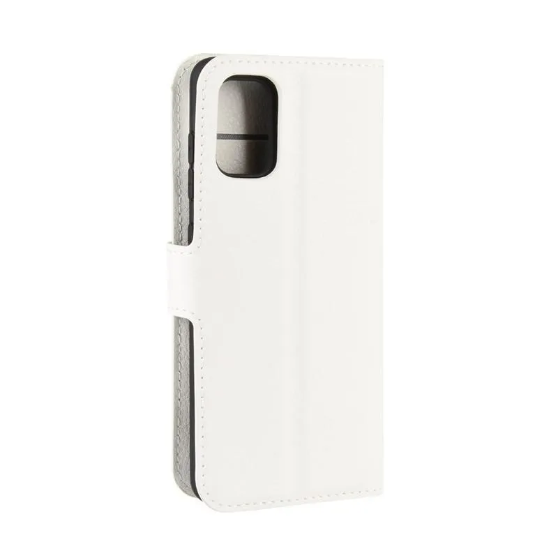 Litchi PU bőr pénztárca tok Samsung Galaxy A41-hez - fehér
