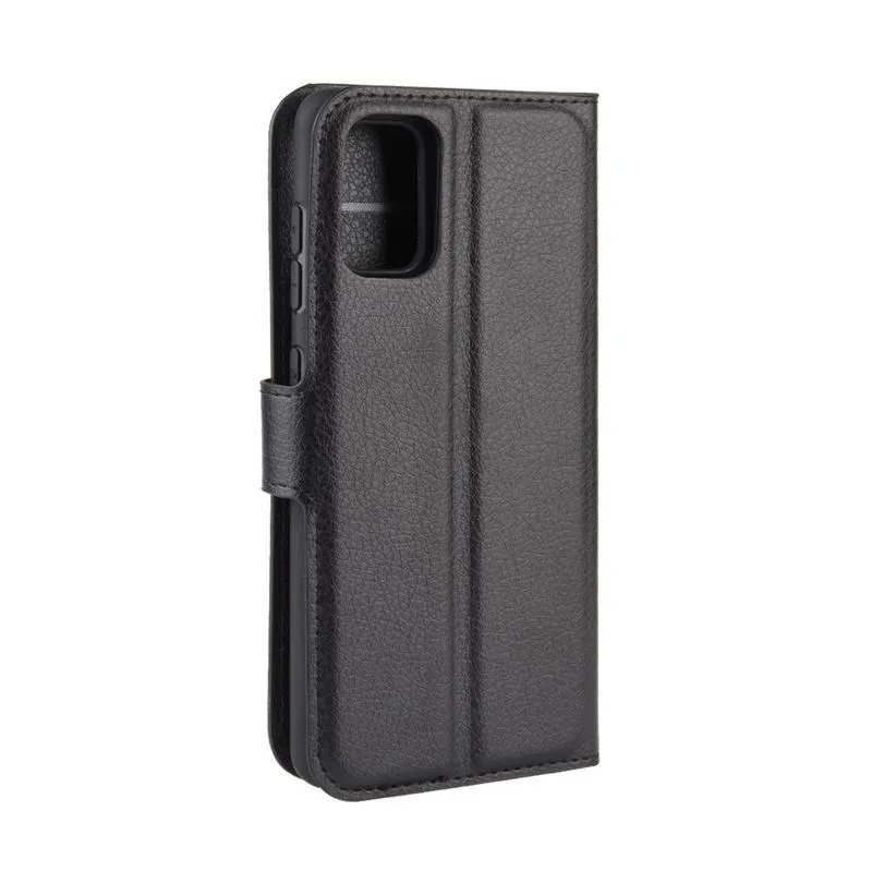 Litchi PU bőr pénztárca tok Samsung Galaxy A41-hez - fekete