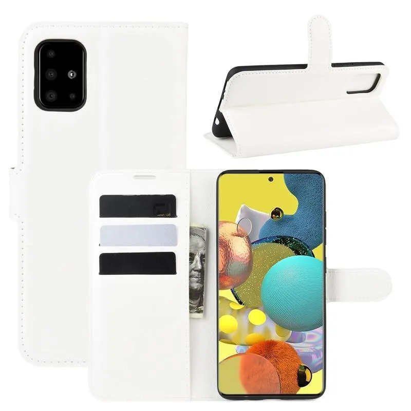 Litchi PU bőr pénztárca tok Samsung Galaxy A51 5G-hez - fehér