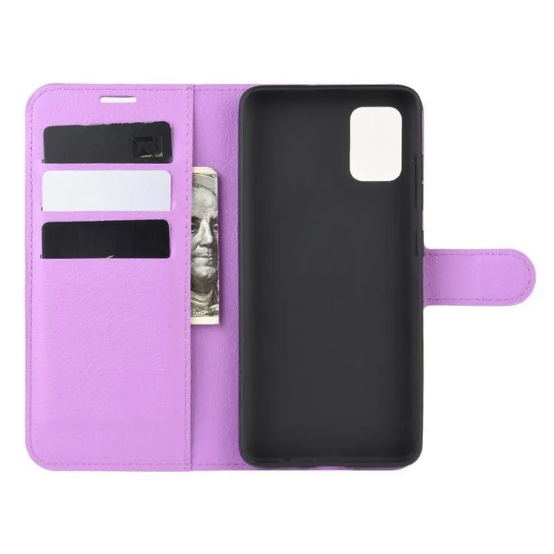 Litchi PU bőr pénztárca tok Samsung Galaxy A51 5G-hez - lila