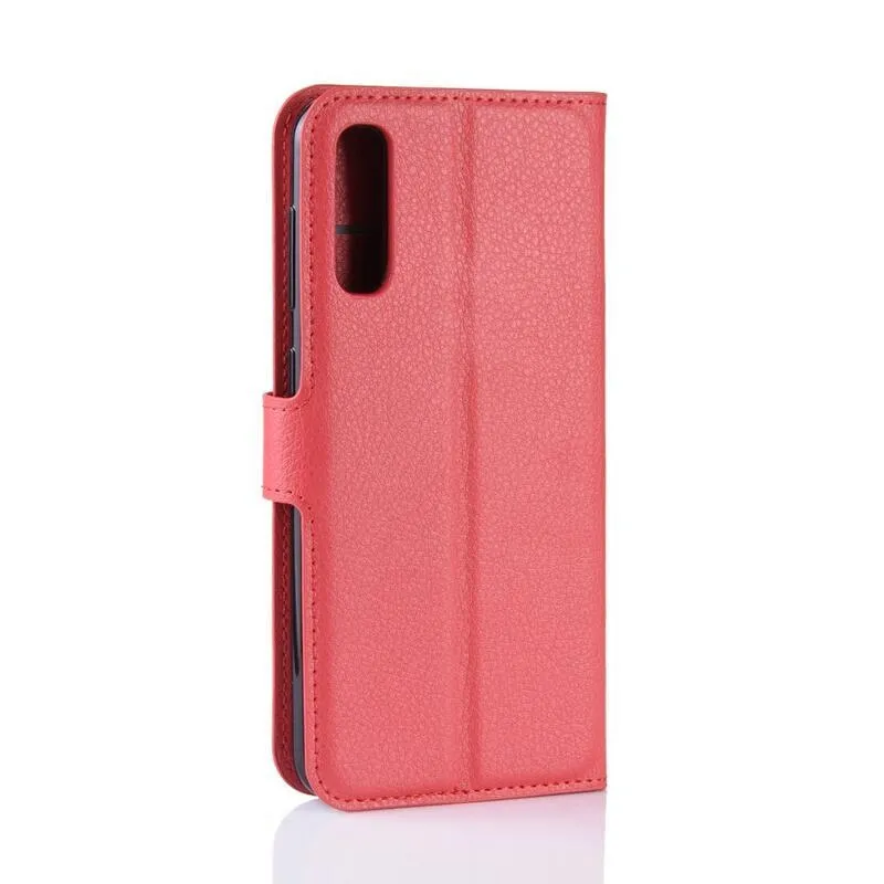 Litchi PU bőr pénztárca tok Samsung Galaxy A70-hez - piros