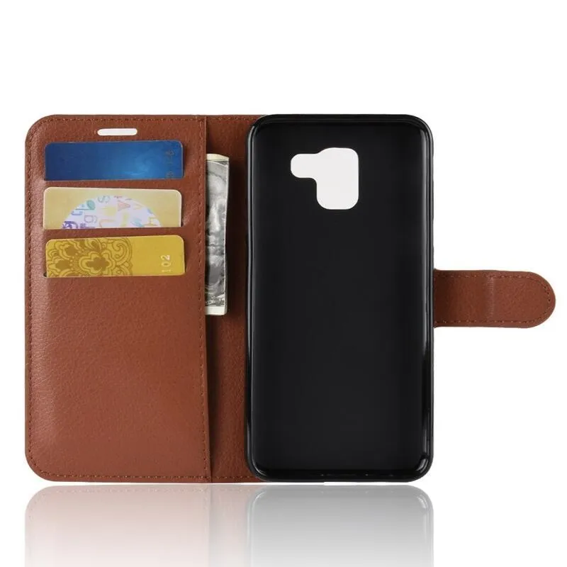 Litchi PU bőr pénztárca tok Samsung Galaxy J6 (2018) számára - barna