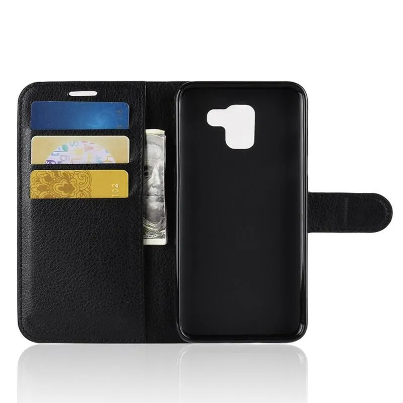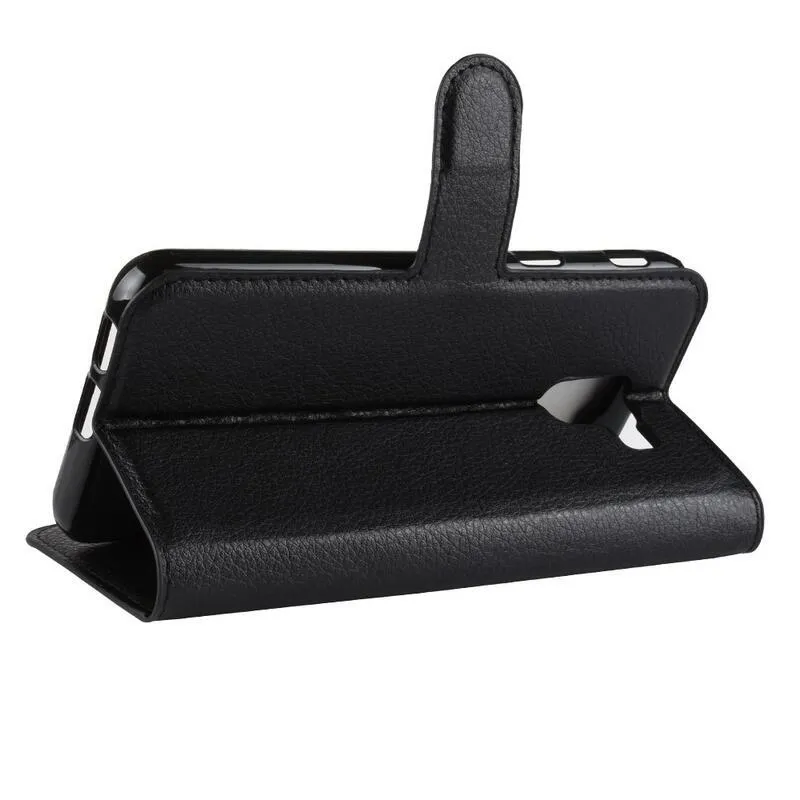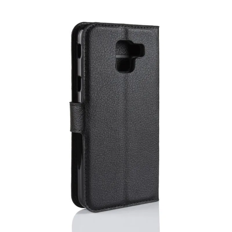 Litchi PU bőr pénztárca tok Samsung Galaxy J6 (2018) számára - fekete