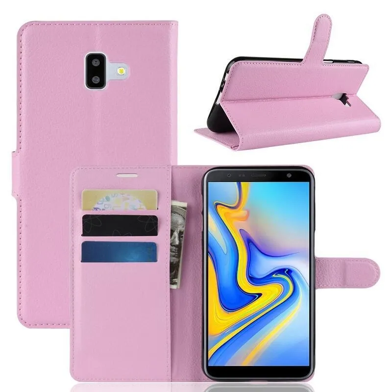 Litchi rózsaszín könyv tok a Samsung Galaxy J6 Plus-hoz