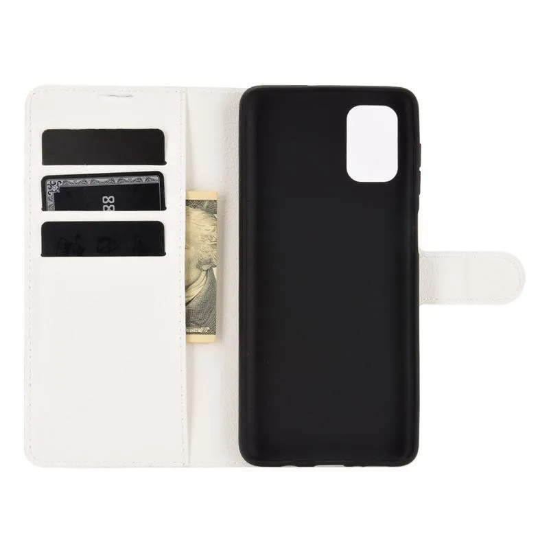 Litchi PU bőr pénztárca tok Samsung Galaxy M51-hez - fehér