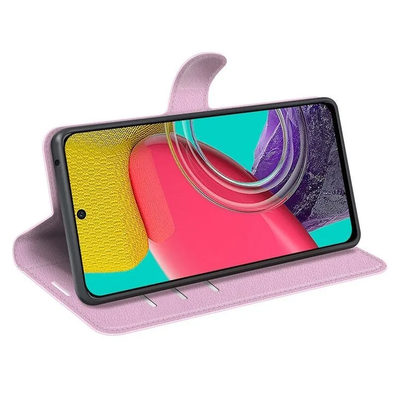 Litchi PU bőr pénztárca tok Samsung Galaxy M53 5G-hez - rózsaszín