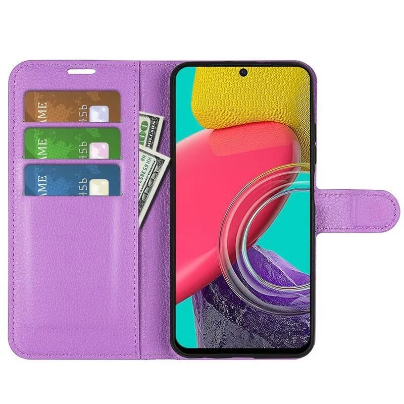 Litchi PU bőr pénztárca tok Samsung Galaxy M53 5G - lila