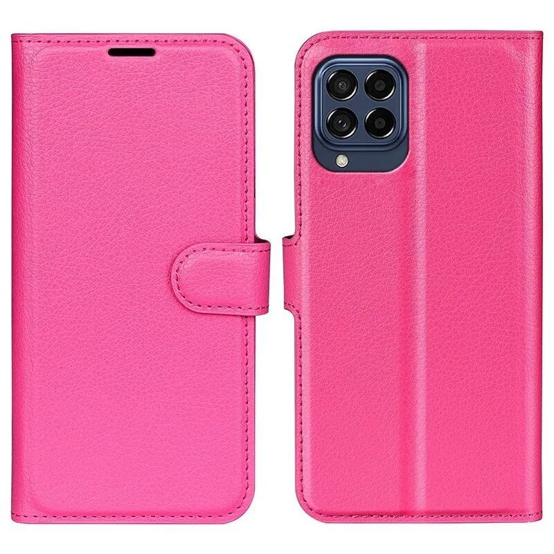 Litchi PU bőr pénztárca tok Samsung Galaxy M53 5G - rózsaszínű