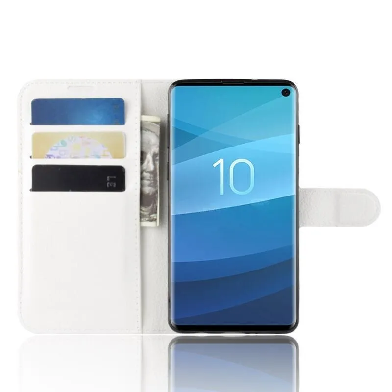 Litchi PU bőr pénztárca tok Samsung Galaxy S10 készülékhez - fehér