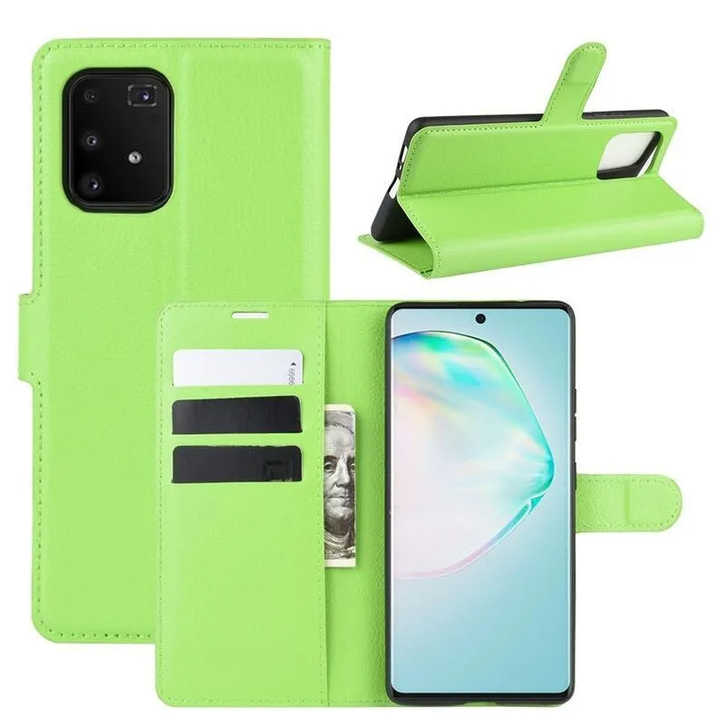 Litchi PU bőr pénztárca tok Samsung Galaxy S10 Lite készülékhez - zöld